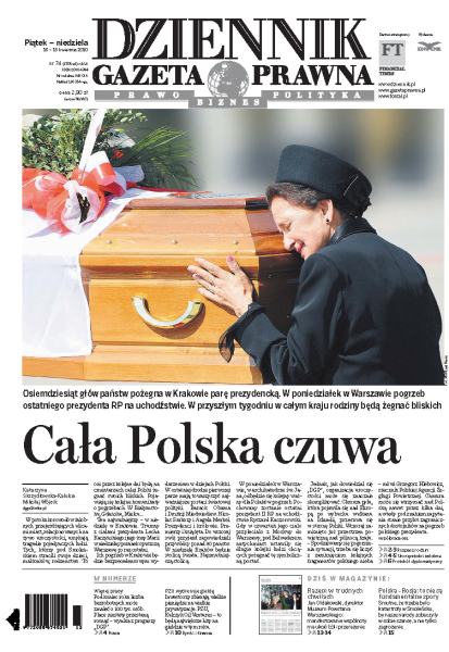 Osiemdziesiąt głów państw pożegna w Krakowie parę prezydencką; w poniedziałek odbędzie się pogrzeb ostatniego prezydenta RP na uchodźstwie Ryszarda Kaczorowskiego; pod koniec roku liczba bezrobotnych może zmaleć o 100 tys. osób; inwestorzy zbierają pieniądze na wielkie i spektakularne prywatyzacje; jakie prawa ma uczestnik wycieczki i jak się bronić przed nieuczciwymi praktykami biur podróży; do tej pory PIT za 2009 rok złożyło 60 proc. podatników.