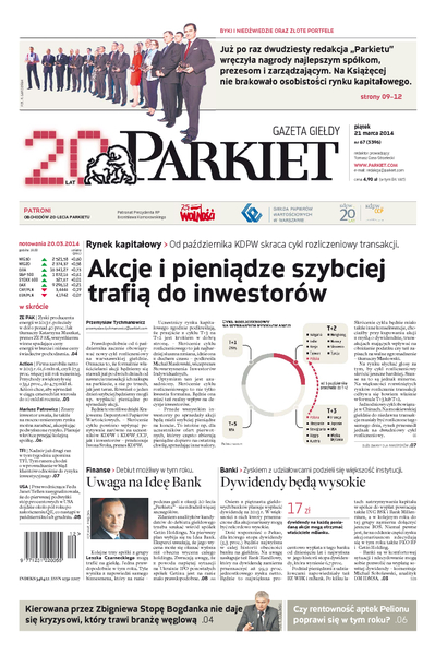 Największy w Polsce newsroom gospodarczy zbiera, analizuje i zgłębia dla Państwa najważniejsze informacje ze świata finansów. Codzienne wydanie „Parkietu”, sześć dni w tygodniu, to kilkadziesiąt artykułów o emitentach, instytucjach finansowych, gospodarce. To również opinie, felietony i wywiady z najważniejszymi ludźmi krajowej i globalnej finansjery.