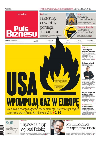 USA wpompują gaz w Europę – jak dużo łupkowego bogactwa będziemy mogli uszczknąć i jak szybko, dopiero się okaże – grunt, że źródełko tryśnie; ThyssenKrupp wybrał Polskę – na krótkiej liście koncernu były m.in. Wrocław, Poznań, Szczecin i Katowice, ale w Trójmieście firma będzie największa; mistrz akwizycji ma apetyt na Delectę – wzrost poprzez przejęcia — w tym Jan Kolański, prezes Coliana, czuje się mocny; faktoring odwrotny pomaga importerom – w takim wypadku faktor reguluje zobowiązania swojego klienta; zwiedzanie z doświadczaniem – to pomysł na biznes Michała Sobieszuka ze Station Warsaw; ciężka praca w miękkim fotelu – nasze „Auto do floty” to w tym tygodniu citroen C5 tourer; CityFit wyrobi Polakom muskuły – sieć 50 siłowni będzie odpowiedzią brytyjskiego funduszu na rosnącą popularność klubów fitness nad Wisłą; Bordeaux winne winnej niemocy – wszystkie indeksy cen win inwestycyjnych są na minusie — na szczęście tylko w krótkim terminie – pięcioletnie zyski przekraczają 30 procent.