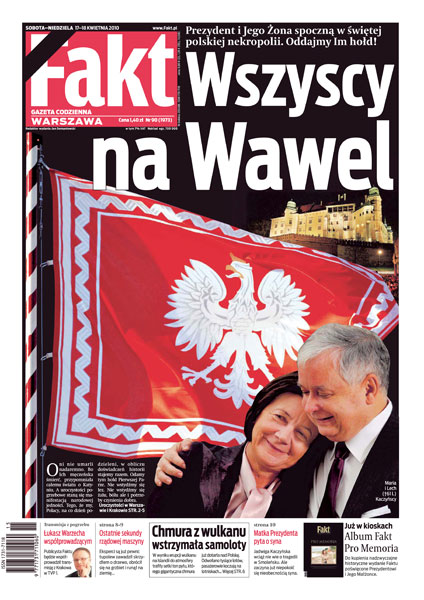 Miliony Polaków oddadzą cześć Prezydenckiej Parze w Warszawie i Krakowie; w wyniku erupcji wulkanu na Islandii do atmosfery