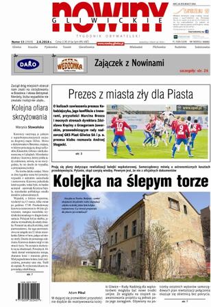 „Nowiny Gliwickie” ukazują się już od 1956 r. Tygodnik obywatelski, który zasięgiem obejmuje Gliwice i powiat gliwicki. Na swoich łamach prezentujemy szeroko pojętą tematykę polityczną, gospodarczą, społeczną, obyczajową, kulturalną, a także sport, ciekawe reportaże i wywiady. Na bieżąco informujemy, co w powiecie piszczy. Jesteśmy organizatorem licznych imprez, takich jak plebiscyt Człowiek Ziemi Gliwickiej czy wybory Miss „Nowin Gliwickich”. Inicjujemy również działalność charytatywną. Opiekujemy się dziećmi ze świetlicy PCK, co roku zapraszamy na wigilię bezdomnych i samotnych. W gazecie nie brakuje okolicznościowych konkursów i zabaw dla czytelników.