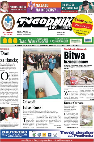 Piotr Michalik odebrał paczkę z paralizatorami, bo myślał, że to prezent dla żony Stanisława J. – nie miał pojęcia o planowanym porwaniu; właściciel „Nosalowego Dworu” kupił budynek dzierżawiony przez Andrzeja Stocha i wojna gotowa; odszedł Juhas Pański; dwuletni pies stracił życie przywiązany do budy, a mordowany był na raty; Regionalna Izba Obrachunkowa uważa, że przyjęta 3 marca przez nowotarskich radnych uchwała o przyznaniu dotacji dla działających w mieście żłobków i klubów dziecięcych narusza prawo; mieszkańcy Podhala będą zdawać egzamin na prawo jazdy w Nowym Targu; zaszczurzone garaże i walące się pomieszczenia w Suchem trzeba jak najszybciej rozebrać.
