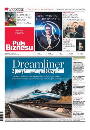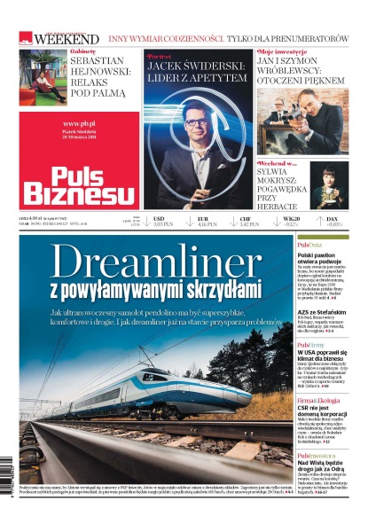 Dreamliner z powyłamywanymi skrzydłami – jak ultranowoczesny samolot pendolino ma być superszybkie, komfortowe i drogie – i jak dreamliner już na starcie przysparza problemów; polski pawilon otwiera podwoje – na razie otwarcie jest symboliczne, bo resort gospodarki dopiero ogłosi konkurs na koncepcję architektoniczną, liczy, że na Expo 2015 w Mediolanie polskie firmy przybędą tłumnie – budżet to prawie 57 mld zł; w USA poprawił się klimat dla biznesu – Stany Zjednoczone dołączyły do rynków o najniższym ryzyku, uważać trzeba natomiast na rynkach wschodzących — wynika z raportu Country Risk Coface’a; nad Wisłą będzie drogo jak za Odrą – ziemia rolna drożeje nieprzerwanie, ale inwestycje w grunty to biznes dla bardzo bogatych; AZS ze Stefańskim – IDS-Bud, firma twórcy Pol-Aquy, wsparła warszawskich siatkarzy – jak twierdzi, nie dla rozgłosu.