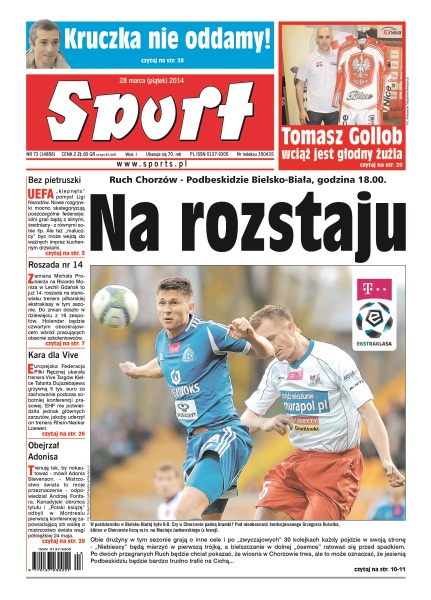 Na rozstaju – Ruch Chorzów i Podbeskidzie Bielsko-Biała spotkają się dziś o 18 – obie drużyny w tym sezonie grają o inne cele i po „zwyczajowych” 30 kolejkach każdy pójdzie w swoją stronę; bez pietruszki – UEFA „klepnęła” pomysł Ligi Narodów – nowe rozgrywki mocno skategoryzują poszczególne federacje: silni grać będą z silnymi, średniacy - z równymi sobie itp; roszada nr 14 – zamiana Michała Probierza na Ricardo Moniza w Lechii Gdańsk to już 14. roszada na stanowisku trenera piłkarskiej ekstraklasy w tym sezonie; kara dla Vive – Europejska Federacja Piłki Ręcznej ukarała trenera Vive Targów Kielce Tałanta Dujszebajewa grzywną 5 tys. euro za zachowanie podczas sobotniej konferencji prasowej.