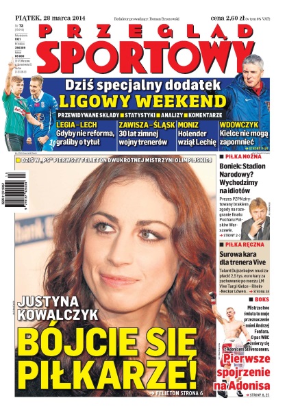 „Bójcie się piłkarze” – dziś pierwszy felieton dwukrotnej mistrzyni olimpijskiej, Justyny Kowalczyk; „Stadion Narodowy? Wychodzimy na idiotów.” – Prezes PZPN, Zbigniew Boniek, zirytowany brakiem zgody na rozegranie finału Pucharu Polski w Warszawie; surowa kara dla trenera Vive – Talant Dujszebajew musi zapłacić 2,5 tys. euro kary za zachowanie po meczu LM Vive Targi Kielce – Rhein-Neckar Loewen; pierwsze spojrzenie na Adonisa – „Mistrzostwo świata to moje przeznaczenie” – mówi Andrzej Fonfara – o pas WBC zmierzy się z Adonisem Stevensonem.