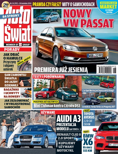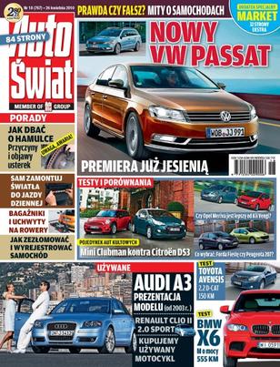 Ile prawdy jest w obiegowych opiniach o samochodach; relacja z najważniejszej tegorocznej wystawy samochodowej w Niemczech – AMI Lipsk 2010; jesienią Volkswagen przedstawi najnowszą wersję Passata, cechować go będzie szlachetna stylistyka oraz zmodyfikowany układ jezdny; Opel Meriva kontra Kia Venga; podczas Grand Prix Formuły 1 w Chinach Jenson Button odniósł drugie zwycięstwo w tym sezonie; test Toyoty Avensis 2.2 D-Cat; BMW X6 M – najszybszy SUV świata; najczęstsze usterki układu hamulcowego; jak wybrać dobre świece zapłonowe; jak zezłomować i wyrejestrować samochód.
