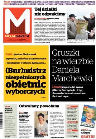 Żary: burmistrz Wacław Maciuszonek zapewniał, że skończy z kumoterstwem i nepotyzmem w ratuszu, a tymczasem...; Sieniawa Żarska: mieszkańcy wsi idą na wojnę z urzędnikami; Roman Krzywotulski, kierujący od 30 lat Żarskim Domem Kultury, został odwołany; gruszki na wierzbie Daniela Marchewki: zapowiadał awans piłkarzy Czarnych Żagań do III ligi, obserwatorium astronomiczne i festiwal rapu; Żary: śmierdzi kanał w lesie i ludzi truje; Żary, obietnice burmistrza. cz. II - rządzi ponad głowami, ludzi jak szafy przestawia; Żary: żałują kasy na zabytki; Żary-Sieniawa: wojna o spokój pod oknami; Marszów: czy nowi mieszkańcy terroryzują wieś; Żagań: siostry robią biznes i dzięki małej firmie pracę ma dziewięć osób; Żagań: 70. rocznica tragicznej ucieczki z żagańskich obozów jenieckich; Iłowa: niecodzienne znalezisko z początków ubiegłego wieku.