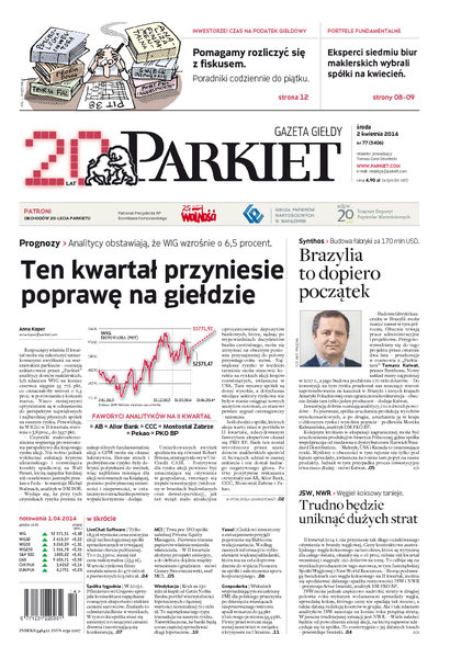 Największy w Polsce newsroom gospodarczy zbiera, analizuje i zgłębia dla Państwa najważniejsze informacje ze świata finansów. Codzienne wydanie „Parkietu”, sześć dni w tygodniu, to kilkadziesiąt artykułów o emitentach, instytucjach finansowych, gospodarce. To również opinie, felietony i wywiady z najważniejszymi ludźmi krajowej i globalnej finansjery.