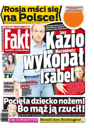 Kazimierz Marcinkiewicz wyrzucił z domu swoją młodą żonę; pocięła dziecko nożem, bo mąż ją rzucił; Rosja mści się na Polsce; spekulanci dobijają nas cenami; gang rozebranych Polek; okradli dom Stockingera; Kurski znów parkuje jak cham; Polaku, na to idą twoje podatki; kłusownicy chcieli złapać wydrę, w druty wszedł niedźwiedź; Grażyna Wolszczak o zabiegach estetycznych: robię wszystko, co się da.