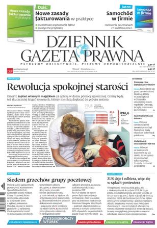 Dziennik Gazeta Prawna – codziennie obiektywne i rzetelne informacje z kraju i ze świata. Piszemy o tym, co dziś ważne i odpowiadamy na Wasze pytania – szczególnie te związane z obecnymi wyzwaniami tj. pandemia, praca zdalna. Na bieżąco wyjaśniamy zmieniające się przepisy. Wspieramy się wyjaśnieniami ministerstw i urzędów. Pomagamy unikać błędów i ostrzegamy, jakie są kary. Ponadto w każdy piątek specjalne magazynowe wydanie Dziennika Gazety Prawnej w całości z tekstami społeczno-ekonomicznymi.