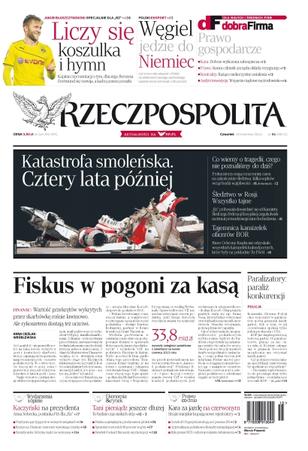 Katastrofa smoleńska cztery lata później; wartość przekrętów wykrytych przez skarbówkę rośnie lawinowo, ale rykoszetem dostają też uczciwi; wielomilionowe dostawy sprzętu dla policji może zrealizować jedna firma, bo funkcjonariusze mają wymagania; Ukraińcy nie wierzą w porozumienie między Rosją a Zachodem i sami chcą zażegnać kryzys na wschodzie kraju; widząc brak reakcji Zachodu na zajęcie Krymu, Rosja nie zamierza już szukać kompromisu dla Syrii; nosy, uszy, a wkrótce również organy wewnętrzne człowieka można produkować w laboratorium; kapitan reprezentacji Polski o tym, dlaczego Borussia się rozwija, a kadra przegrywa; już w tym roku eksport naszego paliwa do elektrowni za Odrą może wzrosnąć o 60 proc.