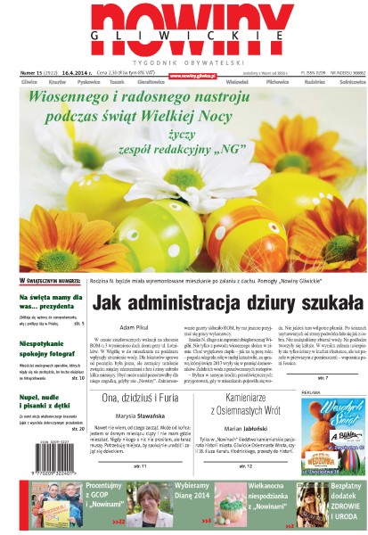 „Nowiny Gliwickie” ukazują się już od 1956 r. Tygodnik obywatelski, który zasięgiem obejmuje Gliwice i powiat gliwicki. Na swoich łamach prezentujemy szeroko pojętą tematykę polityczną, gospodarczą, społeczną, obyczajową, kulturalną, a także sport, ciekawe reportaże i wywiady. Na bieżąco informujemy, co w powiecie piszczy. Jesteśmy organizatorem licznych imprez, takich jak plebiscyt Człowiek Ziemi Gliwickiej czy wybory Miss „Nowin Gliwickich”. Inicjujemy również działalność charytatywną. Opiekujemy się dziećmi ze świetlicy PCK, co roku zapraszamy na wigilię bezdomnych i samotnych. W gazecie nie brakuje okolicznościowych konkursów i zabaw dla czytelników.