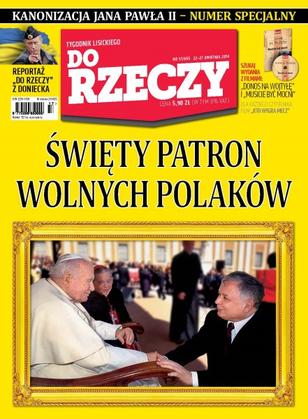 Świąteczny numer w większości poświęcony kanonizacji Jana Pawła II; dziedzictwo wielkiego Polaka; Jan Paweł II – antykomunista; kanonizacja nie jest dla świętego – z bliskim współpracownikiem Jana Pawła II rozmawia Jacek Przybylski; czy KGB chciało zabić papieża; bezpieka przegrała za Spiżową Bramą; z Anną Fotygą kandydatką PiS do europarlamentu, byłą minister spraw zagranicznych, rozmawia Kamila Baranowska; wenecjanie otwarcie domagają się utworzenia własnego państwa, mają dość łożenia na „leni z południa”.