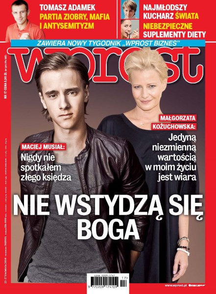 Tomasz Adamek miał uratować Solidarną Polskę przed upadkiem, a może się okazać balastem, który ją zatopi; bp Tadeusz Pieronek opowiada o fotografowaniu Jana Pawła II, kulisach procesu beatyfikacyjnego Wojtyły i o tym, jak został agentem i Żydem; Polacy chętnie zażywają suplementy diety, większość z nich nie pomaga, a część może mieć działanie niepożądane; wierzą, że Potwór Spaghetti stworzył świat i że ta wiara pomoże oddzielić państwo od Kościoła – na razie Polaków nie przekonali; połowa Polaków ma długi – chcą na tym zarobić spółki windykacyjne a robią to, nie przebierając w środkach.