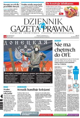 Nie ma chętnych do OFE – tempo zapisywania się do funduszy jest tak słabe, że na koniec lipca może zostać w nich zaledwie 200 tys. Polaków; prorosyjscy rebelianci proszą o pomoc prezydenta Putina; recepty na rok dla przewlekle chorych; trudna sztuka negocjacji; ile kosztuje Wielkanoc; Adam Struzik zaoferował Skarbowi Państwa swoje udziały w kolejowej spółce – Przewozach Regionalnych.