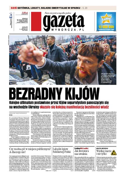 Kolejne ultimatum postawione przez Kijów separatystom panoszącym się na wschodzie Ukrainy okazało się kolejną manifestacją bezsilności władz; czy można pić w miejscu publicznym – a dlaczego nie; łabędzi śpiew Solidarnej Polski; jak literatura nas uwalnia; miasta grzechu – wielkie żarcie i nie tylko; ostateczne wygnanie ks. Lemańskiego.
