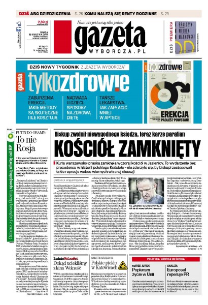Kuria warszawsko-praska zamknęła wczoraj kościół w Jasienicy, to wydarzenie bez precedensu w historii polskiego Kościoła; w trzecim roku sprawowania urzędu minister Bartosz Arłukowicz zaproponował naprawę systemu zdrowia; policyjny nalot na nocne kluby Cocomo; kolejki i listy zapisów jak za PRL, powód: w NBP premiera monet z Janem Pawłem II; dlaczego światowej sławy psycholog Philip Zimbardo otworzył klub młodzieżowy akurat na katowickim Nikiszowcu.