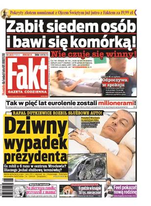 Dziwny wypadek prezydenta Wrocławia – co robił o 6 rano w centrum miasta, i dlaczego jechał służbową terenówką; tak w pięć lat eurolenie zostali milionerami; zabił siedem osób i bawi się komórką – 16-letni kierowca renault niczym się nie przejmuje; Wojciech Jaruzelski na pierwszą randkę przyszedł z mamą.
