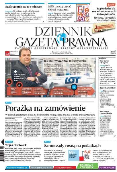 Dziennik Gazeta Prawna – codziennie obiektywne i rzetelne informacje z kraju i ze świata. Piszemy o tym, co dziś ważne i odpowiadamy na Wasze pytania – szczególnie te związane z obecnymi wyzwaniami tj. pandemia, praca zdalna. Na bieżąco wyjaśniamy zmieniające się przepisy. Wspieramy się wyjaśnieniami ministerstw i urzędów. Pomagamy unikać błędów i ostrzegamy, jakie są kary. Ponadto w każdy piątek specjalne magazynowe wydanie Dziennika Gazety Prawnej w całości z tekstami społeczno-ekonomicznymi.