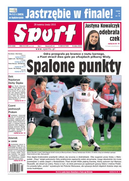 Odra przegrała po bramce z rzutu karnego, a Piast stracił dwa gole po ofsajdach piłkarzy Wisły; Iljan Micanski strzelił ósmą bramkę tej wiosny – Lubin jednak nie wygrał, bo fantastyczną bramkę strzelił w końcówce Sebastian Mila; bez ośmiu zawodników zagra w stolicy Wielkopolski zespół znad morza; meczem z Polonią zespół Ruchu zaczyna ostateczną walkę o być albo nie być w Europie; hat trick Chorwata rozwiał nadzieje Lyonu – Bayern po 9 latach znów zagra w finale Ligi Mistrzów; Barcelona gra dzisiaj jeden z najważniejszych meczów