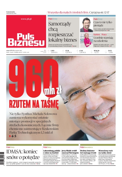 Jak samorządy chcą rozpieszczać lokalny biznes; kształcić się trzeba całe życie – mówi Małgorzata Gałązka-Sobotka; nie tylko Synthos Michała Sołowowa zamierza wykorzystać ostatnie miesiące promocji w specjalnych strefach ekonomicznych – łącznie firmy chemiczne zainwestują w Krakowskim Parku Technologicznym 1,5 mld zł; IDMSA: koniec snów o potędze; wielki książę Henryk, który wkrótce zawita nad Wisłę, zabierze ze sobą reprezentację luksemburskiej branży IT; Hofseth BioCare, notowana w Oslo spółka zajmująca się rybną biotechnologią, docenia, że na jej pokład wstąpił sam król łososia, obejmując połowę nowej emisji; spółki giełdowe dopieszczają
