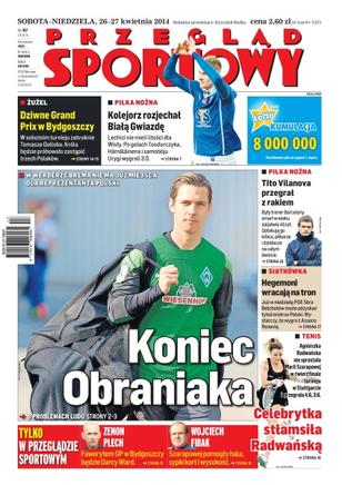 Koniec Obraniaka – w ostatnich meczach Ludovic Obraniak spędził na boisku zaledwie 25 minut, powtarza się sytuacja, którą znamy z reprezentacji Polski; Tito Vilanova przegrał walkę z rakiem – były trener Barcelony zmarł w wieku zaledwie 45 lat, opłakują go kibice, piłkarze i działacze na całym świecie; hegemoni wracają na tron – już w niedzielę PGE Skra Bełchatów może odzyskać tytuł mistrza Polski – wystarczy, że wygra z Asseco Resovią; Kolejorz rozjechał Białą Gwiazdę – Lechici nie mieli litości dla Wisły, po golach Teodorczyka, Hamalainena i samobóju Urygi wygrali 3:0; dziwne Grand Prix w Bydgoszczy – w sobotnim turnieju zabraknie Tomasza Golloba – króla będzie próbowało zastąpić trzech Polaków.