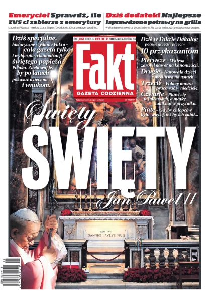 Przez dwa dni Polska rządzona była z Watykanu, do którego na kanonizację udali się wszyscy najważniejsi polscy politycy; prawie milion wiernych z najdalszych zakątków świata przyjechało do Rzymu, by osobiście uczestniczyć w kanonizacji Jana Pawła II; Ryszard Kalisz żyje jak panisko, a własną matkę skazał na samotność; niepublikowane zeznania szatana z Piotrkowa Trybunalskiego; modelka Monika Ordowska najpierw wrobiła aktora w ojcostwo córeczki, a dziś robi biznes z kochankiem; żona Janowskiego ma chrapkę na ciuchy; Natalia Siwiec zawsze stara się dopiąć swego, nawet jeśli to oznacza, że łamie przy tym Boże przykazania; prezydent Rosji to imperialista na miarę carów i Stalina, odbiera wolność innym narodom.