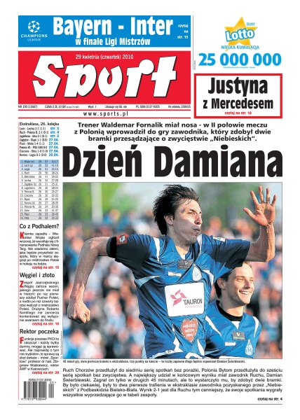 „Kolejorzowi” mógł zdobyć debiutujący w ekstraklasie Damian Szuprytowski; drużyna Dolcanu wygrała pierwszy mecz w rundzie wiosennej, chociaż goście byli bliscy remisu; Górnik w 89 minucie prowadził 3-1, a jednak wcale nie musiał tego meczu wygrać; grający ponad godzinę w „10” Inter przetrwał ataki gospodarzy, którzy strzelili o jednego gola za mało i nie obronią Pucharu Mistrzów; po dramatycznym spotkaniu MKS Dąbrowa Górnicza nieznacznie uległ Siarce Tarnobrzeg; Justyna Kowalczyk otrzymała wczoraj jeszcze jedno trofeum – tym razem terenowego Mercedesa.