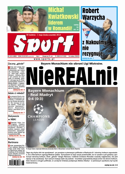 Real upokorzył obrońcę trofeum już po 34 minutach prowadząc w Monachium 3:0 – w finale Ligi Mistrzów zagra po dwunastu latach; w czwartek w Ostrowie Wielkopolskim odbędzie się mecz towarzyski Polska – Australia – obydwie drużyny rywalizować będą w mocnych