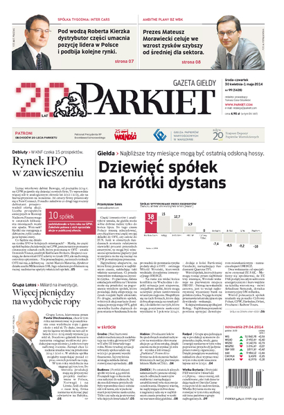 Największy w Polsce newsroom gospodarczy zbiera, analizuje i zgłębia dla Państwa najważniejsze informacje ze świata finansów. Codzienne wydanie „Parkietu”, sześć dni w tygodniu, to kilkadziesiąt artykułów o emitentach, instytucjach finansowych, gospodarce. To również opinie, felietony i wywiady z najważniejszymi ludźmi krajowej i globalnej finansjery.