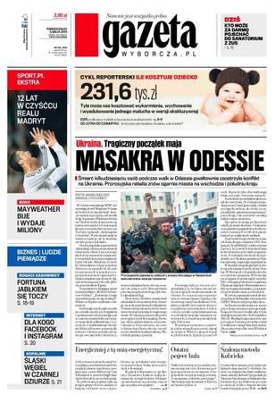 Śmierć kilkudziesięciu osób podczas walk w Odessie gwałtownie zaostrzyła konflikt na Ukrainie – prorosyjska rebelia znów ogarnia miasta na wschodzie i południu kraju; Kongres Kobiet poparł 46 kandydatek do europarlamentu, a w wyborach samorządowych poprze kolejne; ćwierć wieku temu zlikwidowano Państwowe Gospodarstwa Rolne; ZUS wysyła Polaków do sanatorium – za wyjazd nie trzeba płacić; 50 km na południe od Warszawy mamy najnowocześniejsze sady, chłodnie i sortownie na świecie; portale społecznościowe zdążyły wytworzyć wokół siebie sporo stereotypów swoich użytkowników; to były najtrudniej zarobione 32 mln dol. Floyda Mayweathera Jr. i jedna z najtrudniejszych walk w 18-letniej karierze.