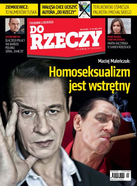 Maciej Maleńczuk: homoseksualizm jest wstrętny; Ziemkiewicz: 10 numerów Tuska; Wałęsa chce uciszyć autora „Do Rzeczy”; Terlikowski ośmiesza Palikota i Michalskiego; dlaczego Polacy tak bardzo polubili serial „Ranczo”; Marta Kaczyńska o swoich rodzicach; projekt premiera to fikcja – rozmowa z Piotrem Naimskim, posłem Prawa i Sprawiedliwości, byłym wiceministrem gospodarki; kinowe filmy dokumentalne potrafią widza zaskoczyć bardziej niż niejedna fabuła; Marine Le Pen i Nigel Farage triumfują w sondażach – to już nie polityczne meteoryty, tylko coraz jaśniej świecące gwiazdy; zawody przyszłości: nostalgista, projektant śmieci czy terapeuta końca życia – to niektóre zawody, jakie będą wykonywać nasze dzieci.