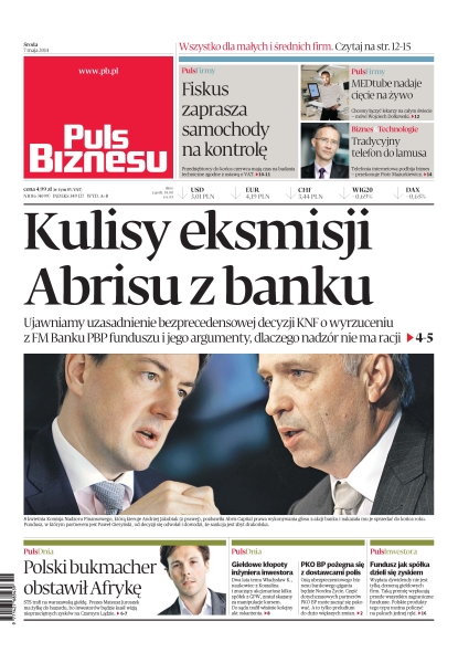 Przedsiębiorcy do końca czerwca mają czas na badania techniczne zgodne z ustawą o VAT; telefonia internetowa podbija biznes – przekonuje Piotr Mazurkiewicz; ujawniamy uzasadnienie bezprecedensowej decyzji KNF o wyrzuceniu z FM Banku PBP funduszu i jego argumenty, dlaczego nadzór nie ma racji; STS trafi na warszawską giełdę – prezes Mateusz Juroszek ma żyłkę do hazardu, bo inwestorów będzie kusił wizją nieprzeciętnych zysków na Czarnym Lądzie; PKO BP pożegna się z dostawcami polis; wypłata dywidendy nie jest tylko domeną giełdowych firm – taką premię wypłacają przede wszystkim zagraniczne fundusze.