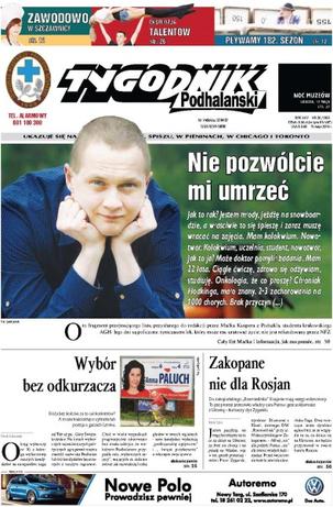 Tygodnik Podhalański to niezależne pismo regionalne – ukazuje się już od 1989 roku na terenie Podhala, Orawy, Spisza i Pienin. Od ponad dziesięciu lat dostępne jest także w Chicago i Toronto. Na jego łamach publikowane są aktualne informacje z regionu.
