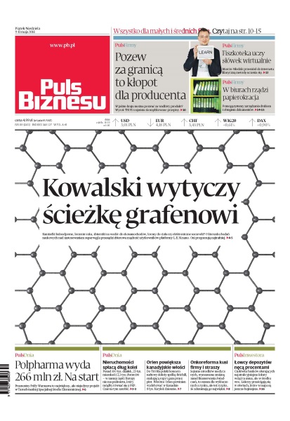 W jakim kraju można pozwać za wadliwy produkt – wyrok TSUE rozjaśnia skomplikowane przepisy; jak Marcin Młodzki przeniósł do internetu klasyczną metodę uczenia się; kamizelki kuloodporne, leczenie raka, zbiorniki na wodór do ekosamochodów, kremy do ciała czy elektroniczne soczewki – o kierunku badań naukowych nad zastosowaniem superwęgla przesądzi zbiorowa mądrość użytkowników platformy L.E.M.nano; przenosiny Polfy Warszawa to największy, ale niejedyny projekt w Tarnobrzeskiej Specjalnej Strefie Ekonomicznej; ponad 100 tys. działek, 23 tys. mieszkań i 2,3 tys. dworców – w naszej części Europy nie ma podmiotu, który mógłby równać się z PKP; Orlen powiększa kanadyjskie włości; czołówka banków oferujących najatrakcyjniejsze lokaty wciąż jest ta sama, ale w środku wre.