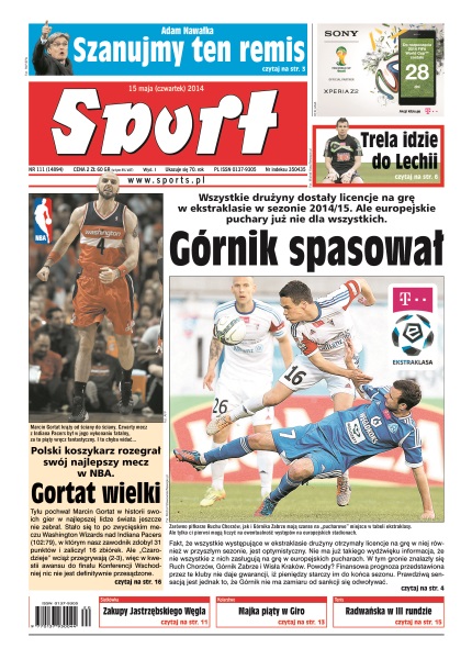 Wszystkie drużyny dostały licencje na grę w ekstraklasie w sezonie 2014/15 – ale europejskie puchary już nie dla wszystkich; Marin Gortat rozegrał swój najlepszy mecz w NBA; grająca bez kilku podstawowych zawodników reprezentacja Polski czuła respekt przed niemieckimi rezerwami; przed rokiem Benfica przegrała finał z Chelsea w 92 minucie, teraz nie była w stanie wykazać swojej wyższości nad Sevillą przez 120 minut gry; Rafał Majka był piąty i awansował na piąte miejsce w klasyfikacji generalnej; trzecia rakieta świata, Agnieszka Radwańska, wylądowała na bocznym korcie, ale spędziła tam tylko 85 minut.