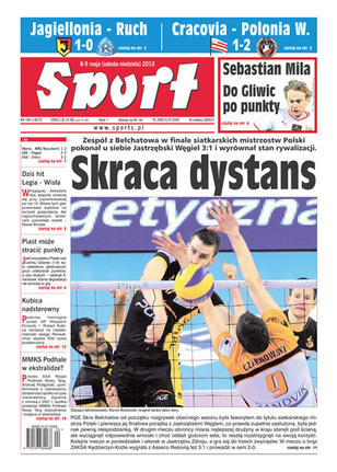 Zespół z Bełchatowa w finale siatkarskich mistrzostw Polski pokonał u siebie Jastrzębski Węgiel 3:1 i wyrównał stan rywalizacji; Jagiellonia Białystok już nie spadnie z ligi; skromne zwycięstwo Polonii Warszawa nad słabiutką Cracovią; przed meczem Legia Warszawa - Wisła Kraków; pierwsza kobieta zdobyła Koronę Ziemi.