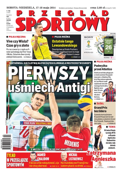 Polscy siatkarze wygrali z Łotwą 3:0; Vive czy Wisła – po raz czwarty z rzędu w finale spotykają się te dwa zespoły; ostatnie tango Lewandowskiego – nasz zawodnik chce zwyciężyć w finale Pucharu Niemiec; Leo Messi zaakceptował warunki nowego kontraktu, będzie zarabiać 20 mln euro rocznie plus bonusy; z powodu kontuzji kolana Krzysztof Kasprzak nie weźmie udziału w sobotnim Grand Prix Finlandii.