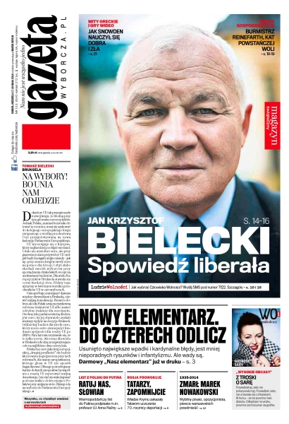 Usunięto największe wpadki i kardynalne błędy, jest mniej nieporadnych rysunków i infantylizmu, ale wady są – darmowy „Nasz elementarz” już w druku; wiernopoddańczy list do Putina podpisała m.in. profesor UJ Anna Raźny; władze Krymu zakazały Tatarom uczczenia 70. rocznicy deportacji; zmarł Marek Nowakowski – wybitny pisarz, opozycjonista, piewca warszawskich przedmieść; jak Snowden nauczył się dobra i zła.