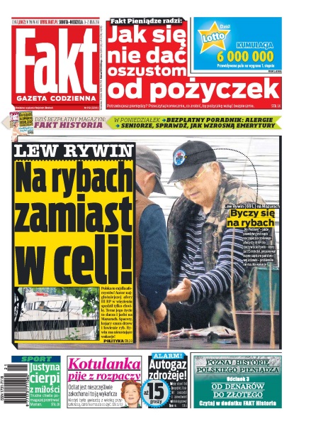 Lew Rywin na rybach zamiast w celi – Polska to raj dla aferzystów, autor najgłośniejszej afery III RP w więzieniu spędził tylko chwilę, teraz jego życie to dacza i jacht na Mazurach; Kotulanka pije z rozpaczy – od lat jest nieszczęśliwie zakochana i to ją wykańcza, kiedyś była gwiazdą z wielką przyszłością, dziś nie ma za co żyć; Justyna cierpi z miłości – trudne chwile pomaga jej przetrwać Marian; autogaz zdrożeje – kolejny absurd Unii Europejskiej, chciałeś zaoszczędzić i zainwestowałeś w instalację gazową? to na nic; Dudek kontra Kosecki – byli piłkarze Realu i Atletico spierają się w redakcji Faktu o wynik dzisiejszego finału; matka zabiła swoje córki – straszliwa zbrodnia młodej Amerykanki.