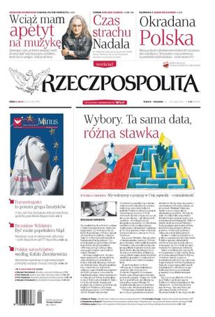 Wybory, ta sama data, różna stawka – my walczymy o pozycję w Unii, sąsiedzi – o niezależność; „Wciąż mam apetyt na muzykę” Grzegorz Markowski o nowej płycie Perfectu; czas strachu Nadala – w niedzielę rozpoczyna się paryski Wielki Szlem – pierwszy raz od lat hiszpański tenisista ma powody do obaw; okradana Polska – „Miarą godności człowieka jest solidarność rozumiana jako współpraca. Tymczasem u nas postawiono na piedestale indywidualizm” – Jan Rulewski, senator PO; Euroentuzjaści to ponura grupa fanatyków – jak Unia Europejska stała się wspólnotą egoistów; polskie samobójstwo według Rafała Ziemkiewicza – historyczne spekulacje z najnowszej książki publicysty analizuje Tomasz Stańczyk.