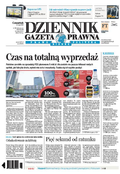 Dziennik Gazeta Prawna – codziennie obiektywne i rzetelne informacje z kraju i ze świata. Piszemy o tym, co dziś ważne i odpowiadamy na Wasze pytania – szczególnie te związane z obecnymi wyzwaniami tj. pandemia, praca zdalna. Na bieżąco wyjaśniamy zmieniające się przepisy. Wspieramy się wyjaśnieniami ministerstw i urzędów. Pomagamy unikać błędów i ostrzegamy, jakie są kary. Ponadto w każdy piątek specjalne magazynowe wydanie Dziennika Gazety Prawnej w całości z tekstami społeczno-ekonomicznymi.