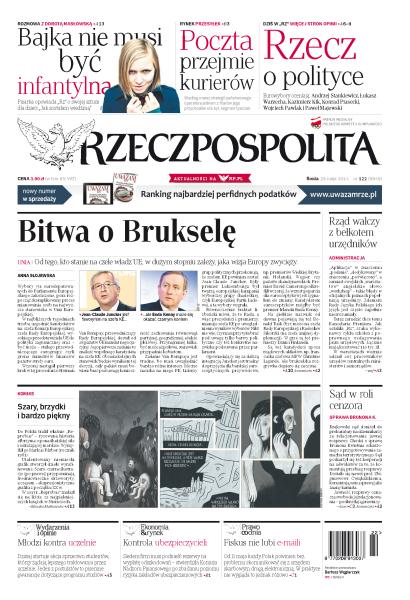 Od tego, kto stanie na czele władz UE, w dużym stopniu zależy, jaka wizja Europy zwycięży; rozmowa z Dorotą Masłowską; Poczta przejmie kurierów – według nowej strategii państwowego operatora jednym z filarów jego przychodów ma być segment paczek; eurowybory oceniają: Andrzej Stankiewicz, Łukasz Warzecha, Kazimierz Kik, Konrad Piasecki, Wojciech Pawlak i Paweł Majewski; rząd walczy z bełkotem urzędników; sprawa Brunona K.: sąd w roli cenzora; do Polski trafił właśnie „Reprobus” – rysowana historia olbrzyma o ponadludzkiej sile i odrażającej mordzie, która w 2013 r. znalazła się na liście 25 najpiękniejszych książek w Niemczech; dzisiaj startuje akcja sprzeciwu studentów, którzy żądają lepszego traktowania przez uczelnie; siedem firm musi podnieść rezerwy na wypłatę odszkodowań – stwierdziła Komisja Nadzoru Finansowego po zbadaniu poziomu ryzyka zakładów ubezpieczeniowych; od 11 maja każdy Polak powinien bez problemu skomunikować się z urzędem skarbowym drogą elektroniczną, w praktyce nie wygląda to jednak różowo.