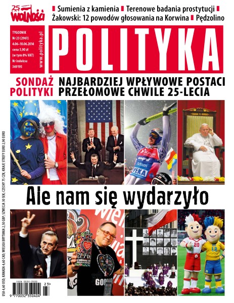 Najbardziej wpływowe postaci – mija 25 lat nowej polskiej niepodległości, Polityka zadała w sondażu opinii publicznej pytanie: kto wywarł największy wpływ na historię III RP; sumienie z kamienia – czy „Deklaracja wiary”, podpisana przez 3 tys. lekarzy katolików, wywoła wreszcie prawdziwą dyskusję o granicach klauzuli sumienia; terenowe badania prostytucji – jak Wiesław Winczura, nic nie musząc, został pierwszym sensu stricto badaczem terenowym prostytucji; niegrzeczne dzieci Pippi – Szwecja utraciła kontrolę nad dziećmi – napisał znany psychiatra i wywołał obyczajową burzę po drugiej stronie Bałtyku; Brazylia, imperium zielonoświątkowców – brazylijscy zielonoświątkowcy liczą, że ich współwyznawca Neymar, nowy Pele, przyniesie im zwycięstwo na mundialu – bo wielkie fortuny i władzę polityczną już mają.