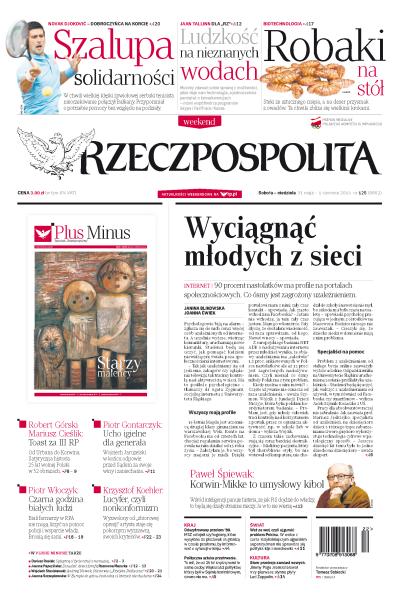 90 procent nastolatków ma profile na portalach społecznościowych, co ósmy jest zagrożony uzależnieniem; w chwili wielkiej klęski żywiołowej serbski tenisista Novak Djoković nieoczekiwanie połączył Bałkany: przypomniał o potrzebie pomocy bez względu na podziały; musimy zdawać sobie sprawę z możliwości, jakie daje nam technologia, a jednocześnie pamiętać o konsekwencjach – mówi współtwórca programów Skype i FastTrack/Kazaa; steki ze sztucznego mięsa, a na deser przysmak z owadów – ta chwila zbliża się wielkimi krokami; MSZ odtajnił szyfrogramy, które wysyłano do placówek za granicę w czasie przełomu, by informować o sytuacji w kraju; to mit, że od 25 lat rządzą nami te same osoby, większości polityków, którzy byli w Sejmie kontraktowym, dawno nie ma; wet za wet, czyli ujgurski problem Pekinu; Jimmy Page zremasterował trzy pierwsze słynne płyty Led Zeppelin; Paweł Śpiewak: Korwin-Mikke to umysłowy kibol.