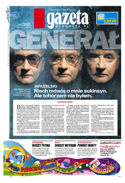 Niepublikowany wywiad Adama Michnika i Pawła Smoleńskiego z Wojciechem Jaruzelskim; żadne rozwinięte państwo nie ma tak dużego i ciągle rosnącego tajnego budżetu na armię oraz służby specjalne jak Rosja – ocenia MFW; po ostatnich wojnach koszty utrzymania 21,5 mln byłych i aktualnych wojskowych stają się w Stanach Zjednoczonych monstrualne; jak państwo ulżyło państwu; Frasyniuk: bardzo mnie razi, gdy ludzie mówią „w tym kraju”; czym Korwin uwiódł młodych; rozmowa z Janem Klatą.