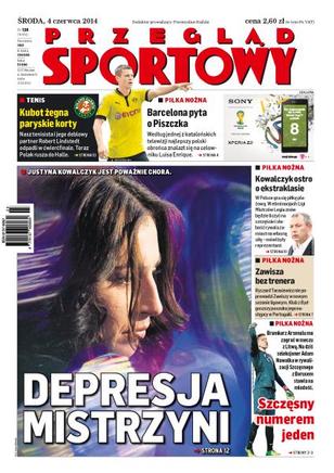 Justyna Kowalczyk jest poważnie chora na depresję; Kubot żegna paryskie korty – w parze z Robertem Lindstedtem odpadł w ćwierćfinale; Barcelona pyta o Łukasza Piszczka; Wojciech Kowalczyk ostro o ekstraklasie; Zawisza bez trenera; Szczęsny numerem jeden w reprezentacji; Frank Lampard: legenda Chelsea po 13. sezonach odchodzi z klubu i przenosi się do USA; dramat Falcao: kolejna gwiazda nie zagra na mundialu z powodu kontuzji; Tauron Basket Liga: Stelmet pokonał Turów 93:92 i w fi nale jest 1-2.