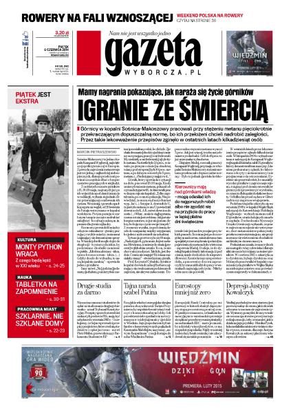Mamy nagrania pokazujące, jak naraża się życie górników; rowery na fali wznoszącej; nie można zmuszać studentów do opłat za studiowanie drugiego kierunku – uznał Trybunał Konstytucyjny; rosyjskie władze i europejska skrajna prawica chcą wskrzesić Święte Przymierze, by wspólnie bronić wiary i walczyć z homoseksualnym lobby, ich przedstawiciele spotkali się na trzymanym w ścisłej tajemnicy zjeździe w Wiedniu; Europejski Bank Centralny po raz pierwszy w historii obniżył depozytową stopę procentową poniżej zera; Monika Pyrek: rozumiem Justynę Kowalczyk; Monty Python powraca – z czego będą kpić w XXI wieku; powstaje tabletka na zapomnienie; pracownia miast: szklarnie, nie szklane domy; mailem po wyrok, czyli cyfryzacja sprawiedliwości.