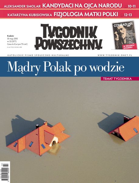 Rozmowa z Piotrem Nieznańskim z Działu Ochrony Przyrody WWF Polska, członkiem Krajowej Rady Gospodarki Wodnej, o ochronie przeciwpowodziowej w Polsce. Ks. Adam Boniecki, naczelny „Tygodnika”, odnosi się do komunikatu Rady ds. Rodziny Konferencji Episkopatu Polski dotyczącego katolików popierających procedurę in vitro. Jeśli chcecie wiarę na nowo ożywić, musicie wrócić do medytacji – radzi ks. Joseph Pereira w rozmowie „Jogin w Kościele”. Czy inne religie istnieją z woli Boga – o jednym z pytań, które stanowi dziś jedno z największych wyzwań dla tradycyjnej doktryny Kościoła, pisze Józef Majewski. W Polsce poza rodzinami biologicznymi pozostaje niemal 100 tys. dzieci – Przemysław Wilczyński o nierozwiązanym problemie sieroctwa społecznego. Z okazji Dnia Matki gorzki tekst Katarzyny Kubisiowskiej o roli matki i kobiety w w polskim społeczeństwie. Kolejny odcinek cyklu Elżbiety Adamiak „Kobiety w Biblii” – tym razem o symbolach kobiecości, do których odwołuje się w swoich listach św. Paweł. Reportaż Andrzeja Mellera z pogranicza Tajlandii i Kambodży. Ponadto: dodatek poświęcony drugiej edycji Międzynarodowego Festiwalu Literatury im. Josepha Conrada.