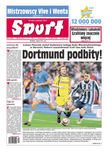 Łukasz Piszczek został klubowym kolegą Kuby Błaszczykowskiego w Borussii, a Robert Lewandowski trafi tam lada dzień; mimo kryzysu ekonomicznego i niepokojów w Grecji, Kamil Glik nie ma nic przeciw temu, żeby grać w Panathinaikosie; w minionym sezonie w klubie z Bogumińskiej było zatrudnionych aż czterech trenerów, ale tylko ostatni z nich – Marcin Brosz – może odejść z podniesionym czołem; po 45 latach polskie kluby grają dwa razy rzadziej, dwa razy krócej i najczęściej między sobą – twierdzi Włodzimierz Lubański; dla fanów w Orlando fatalny początek finałowej konfrontacji Magic z Boston Celtics jest wielkim rozczarowaniem; Karolina Woźniacka w ćwierćfinale Polsat Warsaw Open – Jelena Dementiewa poza turniejem.